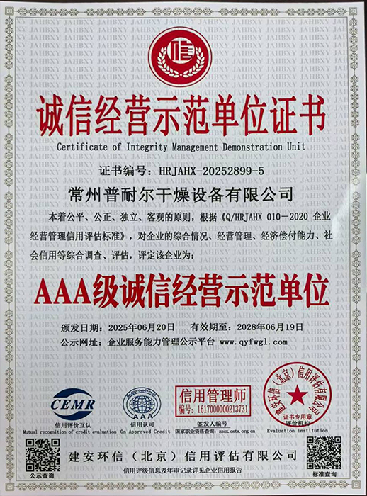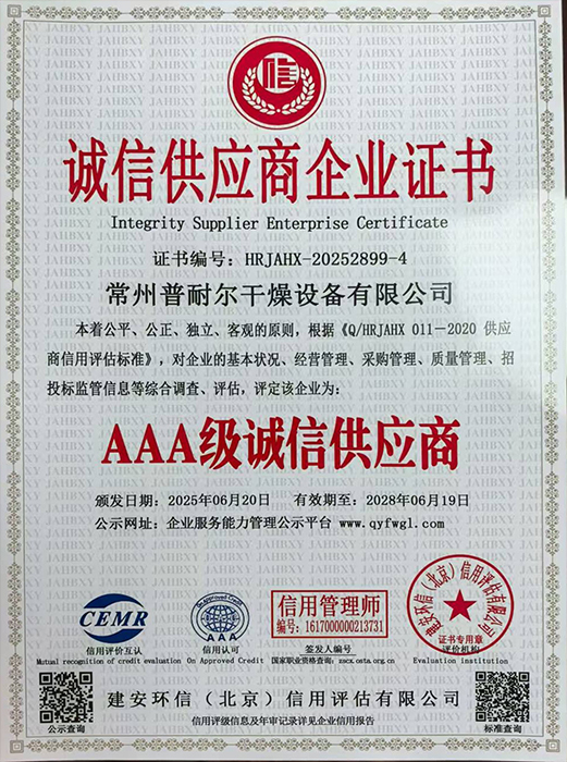 诚信供应商企业证书