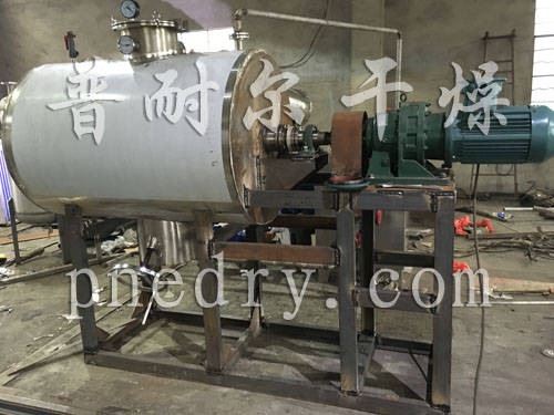 真空耙式干燥机常用的干燥介质一般为0.1—0.3Mpa的蒸汽、导热油或热水,干燥器内的真空度为50—90kPa,物料的填充率为30%--80%,热效率为70%--80%.轴的转速为6—30rpm无级调速。