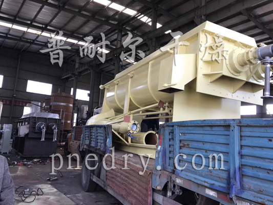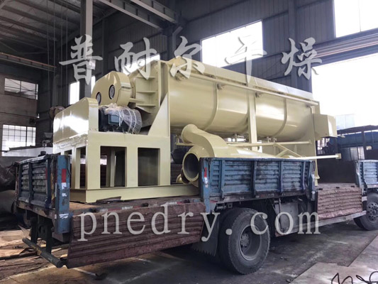 在桨叶及夹套通入热介质加热的同时,出料口上部同时进行抽湿,这样大大增加了设备的干燥强度。蒸发出来的水份由抽湿风机带出干燥机。