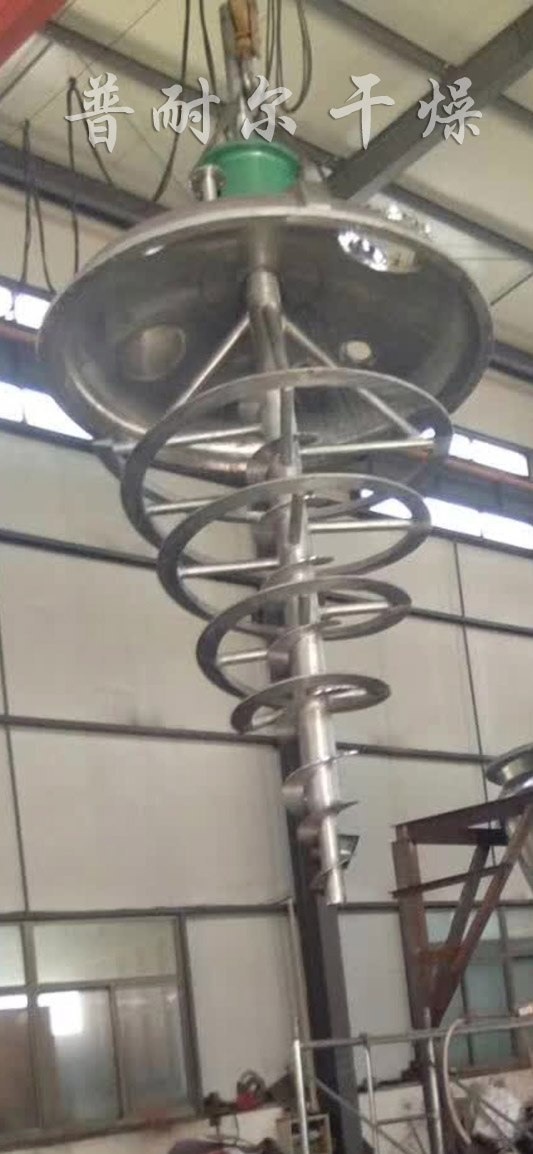 羧甲基纤维锂螺带真空干燥机是一种利用螺带将物料旋转提升及圆锥夹套、空心螺带内同时通入传热介质(如热水、导热油、蒸汽等),使加热后物料从四周提升并从中间下落,快速不断的循环翻转,并通过筒体内抽真空将水汽及时带走, 使物料在短时间内达到干燥和混合目的。与传统的立式混合机相比,筒体内无任何传动机构,从根本上杜绝因润滑油泄漏而导致物料污染,运行可靠稳定,特别适宜卫生要求高的粉料、颗粒混合;同时也适用于粘性流体或稠状、湿状为主物料的搅拌混合;与其它卧式干燥机相比,具有出料方便,可以100%完全出料,操作、维修方便。它的干燥效率是同等规格“双锥回转真空干燥机”3-5倍。