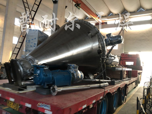 ●干燥阶段:滤饼脱水后,通过回转使滤饼疏松,同时,夹套内蒸汽对内壁进行加热,通过热传导对滤饼进行加热升温,湿份迅速蒸发达到干燥的效果。通过设备内抽真空的方法加快蒸发速度。通过加入处理后的热氮气等介质带走蒸发的湿份,可加速物料的干燥,提高干燥效果。
