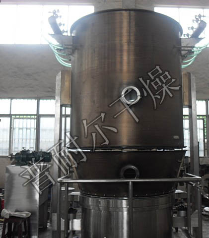 待干燥的物料(颗粒或细粉)投入干燥器料斗,空气经中效过滤器除尘后,由加热器升温至干燥所需要的温度,然后进入主塔,当其穿过料斗底部的多孔板,使料斗内物料流化同时除去水份而干燥,水份挥发后随排风经布袋过滤器过滤后由风机排出,干燥过程中随风上升的细粉则由布袋捕集,并通过清灰装置返回流化床。