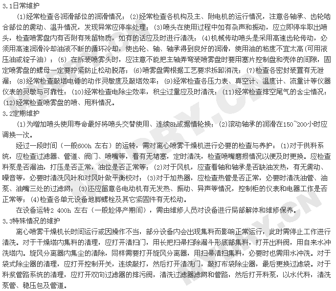 离心喷雾干燥机的使用、维护与故障处理