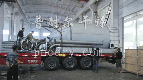日常操作(1)首先开启离心风机,然后开启电加热,并检查有否漏气,如正常即可进行筒身预热,因热风预热决定着干燥设备的蒸发能力,在不影响被干燥物料的质量的前提下,应尽可能提高进风温度;(2)预热时,干燥室底部和旋风分离器下料口处阀门必须关好,以免冷风进入干燥室,降低预热效率;(3)当干燥室进口温度达到目180℃~220℃时,开启离心喷头,当喷头达到^高转速时,开启进料泵,加入料液,进料量应由小到大,否则将产生粘壁现象,直到调节到适当量。料液的浓度应根据物料干燥的性质温度来配制,以保证干燥后成品有良好的流动性;(4)干燥成品的温度和湿度,取决于排风温度,在运行过程中,保证排风温度为一个常数是极其重要的,这取决于进料量的大小,进料量调节稳定,出口温度是不改变的。若料液的含固量和流量发生变化时出口温度也会出现变动;(5)产品温度太低,可减少加料量,以提高出口温度。产品的温度太高,则反之。对于产品温度较低的热敏性物料可增加料量,以降低排风温度,但产品的湿度将相应提高;(6)干燥后的成品被收集,在塔体下部和旋风分离器下部的授粉器内,在授粉器未经充满前就应调换,在调换授粉器时,必须先将上面的蝶阀关闭方可进行;(7)若干燥的成品具有吸湿性,旋风分离器及其管道,授粉器的部位应用绝热材料包扎,这样可以避免干燥成品的吸潮吸湿。