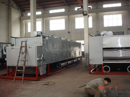 HG滚筒刮板干燥机设备让液体或泥浆状物料在水蒸气或其他载体加热的滚动表面形成薄膜。滚筒转一圈过程中即能干燥完毕,自动用刮刀刮下干燥品后,滚筒表面再与湿物料接触形成薄膜进行干燥。带式干燥机采用日本先进技术和国内优质原材料,研制成功新型节能设备DWT带式干燥机。该产品采用多层移动式不锈钢网带堆放物料,热气流自下而上穿过网带及上面的物料,热交换均匀充分、速度快、蒸发强度高,符合GMP要求,适用于透气性好的片状、条状、颗粒状、滤饼类的膏状物料等干燥,尤其适用于含水率高而干燥温度不能高的物料干燥。还开发有5层带式干燥机,具有上述相同效果与应用性
