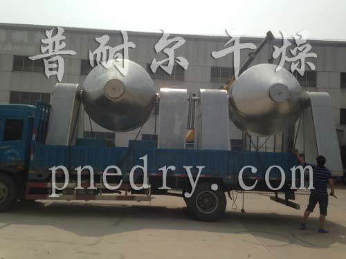 双锥回转真空干燥机的真空干燥可防止因常压热风干燥而出现的物料外表硬化现象,真空干燥使得物料内和外面压差变大,此种压力梯度下,水分能快速移至表面,不会出现外表硬化。双锥回转真空干燥机在真空干燥的过程中,筒内压一直处在低于大气压的状态,气体分子数量少,密度与含氧量低,便于易氧化药物的干燥,降低物料沾染细菌菌的机率汽化状态中的水其温度与蒸压成正比,因此在真空干燥时,物料中的水分只需处于低温状态就能汽化,实现低温干燥的目的,对热敏性物料的药品的生产。