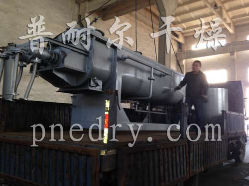 在夹套通入热介质加热的同时,出料口上部同时进行抽湿,这样大大增加了设备的干燥强度。蒸发出来的水份由抽湿风机带出干燥机。